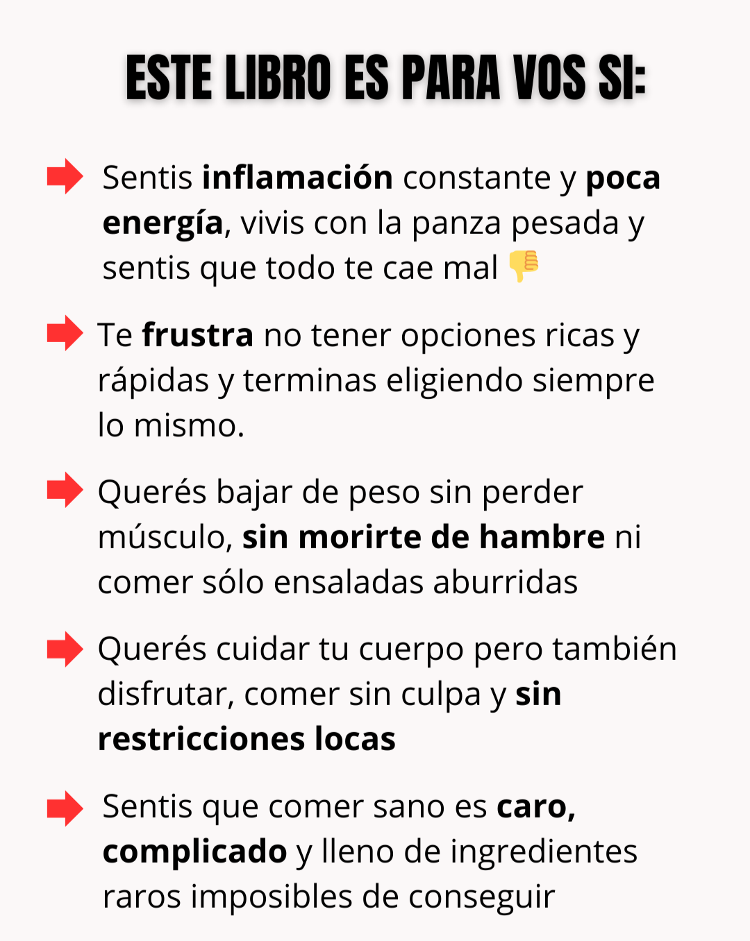 ¡Sí! Ese es justamente el objetivo de este libro. Todas las recetas están pensadas para que puedas disfrutar de comidas sabrosas y nutritivas sin pasar horas en la cocina. Con ingredientes fáciles de conseguir y pasos simples, vas a descubrir que comer sano y proteico no es sinónimo de aburrido ni complicado. En pocos minutos vas a tener platos listos que te nutren, te dan energía y además ¡te encantan al probarlos!
